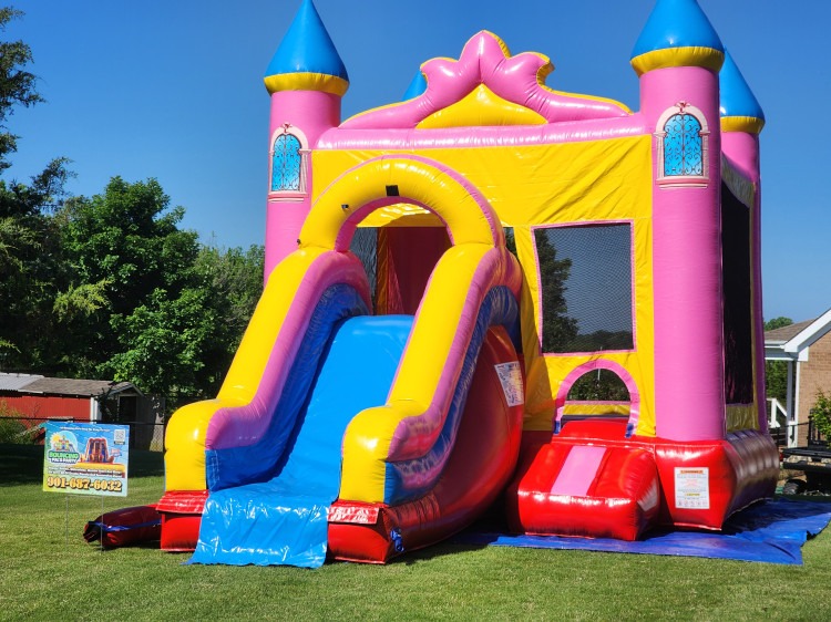 - OCCUPANCY: A maximum of 5-6 kids of equal size at one time for bounce houses, and 1 person at a time for slides is what most inflatable manufacturers recommend.